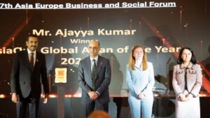 Dr. Ajayya Kumar receiving the Global Asian of the Year 2021-22 award.
