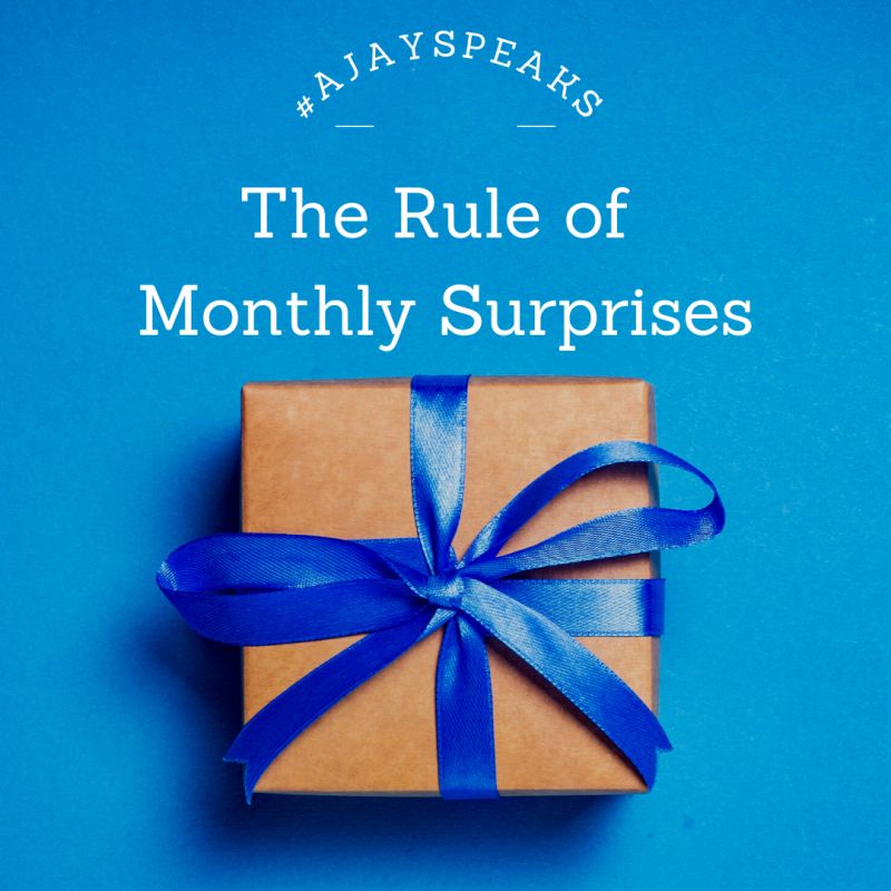 Ajay: Call it the rule of monthly surprises if you like. As a budding entrepreneur this will help you grow, explore more avenues and enjoy what you are doing. Just surprise yourself every month.